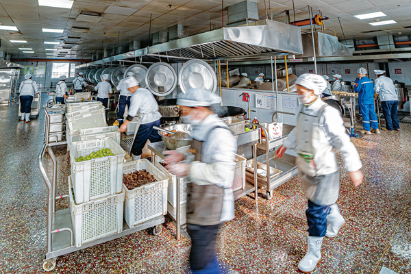 圖為北營(yíng)生活服務(wù)中心餐飲工區(qū)忙碌的加工車間。