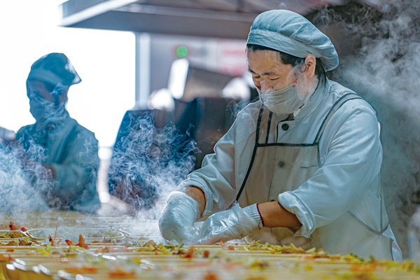 2021年,為進(jìn)一步增強(qiáng)職工“舌尖上的幸福感”,鞍鋼集團(tuán)本鋼北營(yíng)公司組建了總建筑面積近5000平方米的配餐中心,整體設(shè)備按照中央廚房標(biāo)準(zhǔn)配置,擁有副食加工間、面點(diǎn)制作間、主食加工間等生產(chǎn)線,滿負(fù)荷開動(dòng),可滿足1萬(wàn)人的就餐需求。在這個(gè)中央廚房里,48名北營(yíng)生活服務(wù)中心餐飲工區(qū)職工每天用心烹制美食,溫暖著該公司職工的“三餐四季”,讓他們盡享幸福“食”光。