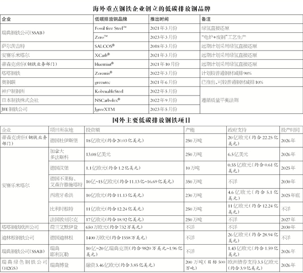 瑞典鋼鐵公司(SSAB):該公司是全球較早探索低碳排放鋼生產(chǎn)工藝的長流程鋼鐵企業(yè)。2016年4月份,SSAB聯(lián)合瑞典鐵礦石生產(chǎn)商LKAB集團等研發(fā)低碳排放全流程生產(chǎn)工藝——HYBRIT(突破性氫煉鐵技術)。該項目分為4個階段實施,2016年—2017年為項目預研階段,2018年—2024年為中試研究階段,2025年—2035年為示范運行階段,2035年實現(xiàn)商業(yè)化運行。2021年3月份,SSAB發(fā)布了低碳排放鋼——Fossil Free SteelTM品牌,采用可再生能源發(fā)電,綠氫直接還原+電爐煉鋼生產(chǎn)低碳排放鋼。為了滿足下游用戶對低碳排放鋼的急切需求,2023年3月份,SSAB推出采用可再生能源發(fā)電、電爐全廢鋼冶煉工藝生產(chǎn)的低碳排放鋼品牌——ZeroTM,為市場供應低碳排放鋼。截至2023年底,已有20余家下游直接和間接用戶與SSAB簽訂了低碳排放鋼供貨協(xié)議,包括建筑企業(yè)、汽車企業(yè)(斯堪尼亞)、汽車板深加工企業(yè)(Kirchhoff)、林業(yè)機械制造企業(yè)(Ponsse)、手表企業(yè)(TRIWA)、建筑企業(yè)(DS St?lprofil和Peab)、家具企業(yè)(Vestre)等。為了加強低碳排放鋼對下游用戶的減排效果,SSAB充分利用自身在鋼材結(jié)構設計、鋼材成型、鋼材焊接(連接)、工程技術專家支持等方面長期積累的實力,與下游用戶合作并提出綜合性解決方案。