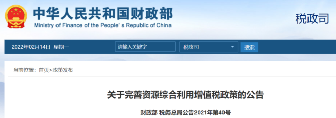 為推動資源綜合利用行業持續健康發展,日前,財政部、國家稅務總局印發《關于完善資源綜合利用增值稅政策的公告》(財政部 稅務總局公告2021年第40號)(以下簡稱第40 號公告),明確自2022年3月1日起執行新的資源綜合利用增值稅政策。其中,符合條件的企業,廢鋼鐵可按30%退稅。