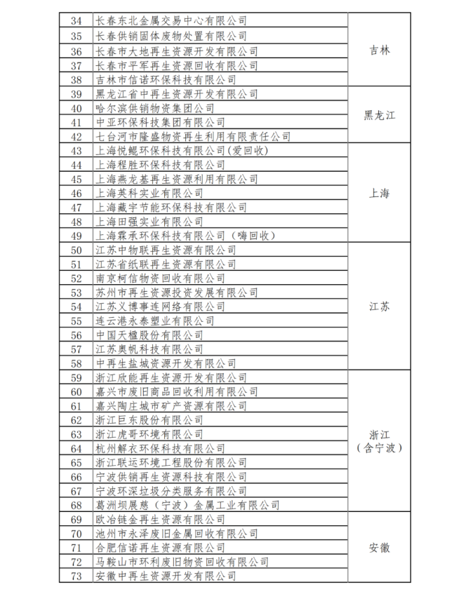 第40號公告的下發,對再生資源虛開發票泛濫的問題提供了政策引領,此公告下發的第二天,國家商務部發布了《關于重點聯系再生資源回收企業名單的公示》,其中涉及符合最新資源綜合利用增值稅政策的169家再生資源回收企業。詳見如下名單: