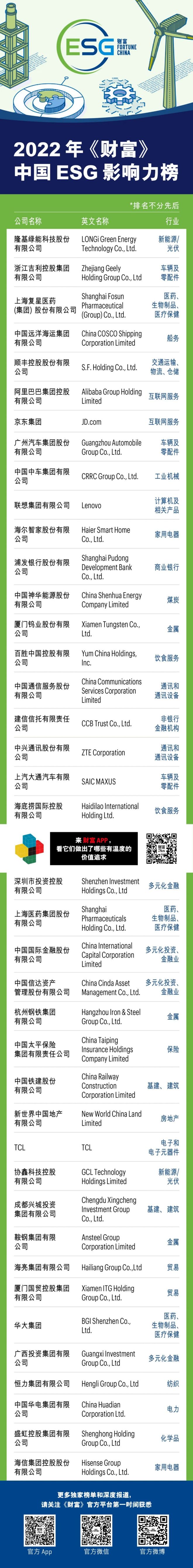 據悉,今年是福布斯中國第一次發布中國ESG 50,旨在尋找中國企業在ESG層面的最佳實踐,聚焦企業在Environmental(環境)、Social(社會)和Governance(公司治理)的作為和信息披露等情況,從中剖析和發現中國ESG發展現狀及未來趨勢。