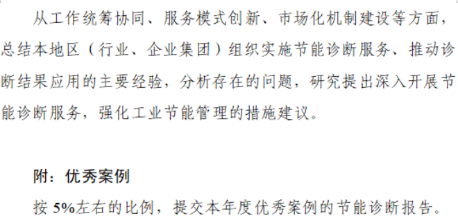 (二)確定年度重點任務。工業(yè)和信息化部通過公開招標方式,綜合考量工業(yè)節(jié)能診斷服務機構的服務規(guī)模質量、專業(yè)人員、技術水平以及被診斷企業(yè)情況等,確定發(fā)布2023年度全國工業(yè)節(jié)能診斷服務任務清單。