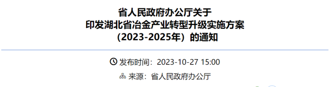 《湖北省冶金產(chǎn)業(yè)轉(zhuǎn)型升級實施方案(2023-2025年)》已經(jīng)省人民政府同意,現(xiàn)印發(fā)給你們,請認真貫徹執(zhí)行。