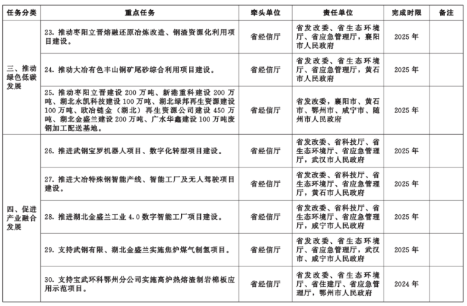 附件:湖北省冶金產(chǎn)業(yè)轉(zhuǎn)型升級重點任務清單