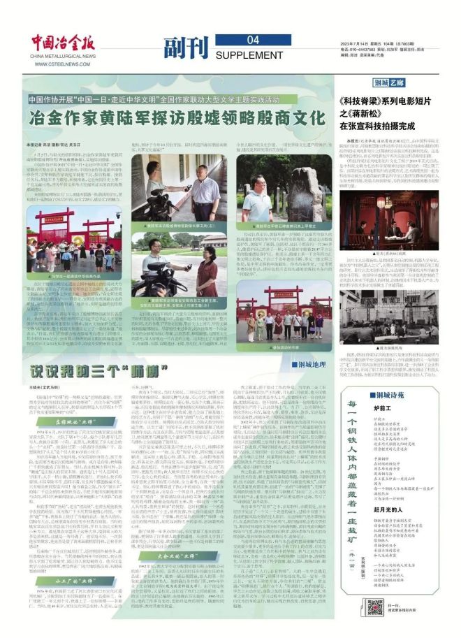 同時,白楊積極參與“深入生活、扎根人民”主題實踐。受中國冶金作協選派,白楊參加中國作協2023“中國一日·走近中華文明”全國作家聯動大型文學主題實踐活動,就地下沉,探訪殷墟,走近我國歷史上第一個有文獻可考,并為甲骨文和考古發掘所證實的商代晚期都城遺址。白楊在殷墟進行現場采訪,用一個冶金作家的全新視角,深入審視這一片古老的土地。采訪后,他撰寫的文化散文《殷墟上的樂章》在《中國冶金報》副刊全文發表,并被《安鋼報》轉載,受到中國作協好評。2023年9月16日,30多位文友對該作品進行研討。白楊現場介紹了創作經過,并講述了散文寫作的章法和技巧。
