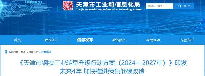 鋼鐵工業(yè)是天津重要基礎(chǔ)產(chǎn)業(yè),為天津市制造業(yè)高質(zhì)量發(fā)展提供了重要材料支撐,并有力保障了工業(yè)經(jīng)濟(jì)平穩(wěn)運(yùn)行。記者日前從天津市工業(yè)和信息化局獲悉,《天津市鋼鐵工業(yè)轉(zhuǎn)型升級(jí)行動(dòng)方案(2024—2027年)》(以下簡(jiǎn)稱《行動(dòng)方案》)日前已正式印發(fā),鼓勵(lì)全市鋼鐵企業(yè)用足用好國家和地方的各項(xiàng)支持政策,開展技術(shù)創(chuàng)新和裝備升級(jí),推廣新應(yīng)用、拓展新市場(chǎng),成為轉(zhuǎn)型升級(jí)的推動(dòng)者、受益者。天津市鋼鐵工業(yè)未來4年將積極推動(dòng)減污降碳協(xié)同治理,加快推進(jìn)綠色低碳改造。