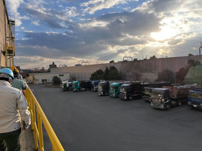 △ 廢鋼車(chē)輛等待判級(jí)入庫(kù)