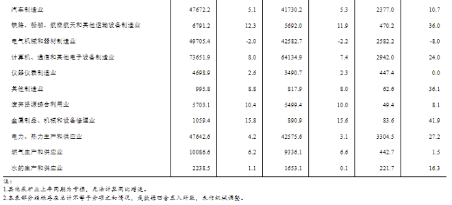1—6月份,全國(guó)規(guī)模以上工業(yè)企業(yè)實(shí)現(xiàn)利潤(rùn)總額35110.3億元,同比增長(zhǎng)3.5%。1—6月份,主要行業(yè)利潤(rùn)情況如下:有色金屬冶煉和壓延加工業(yè)利潤(rùn)同比增長(zhǎng)78.2%,電力、熱力生產(chǎn)和供應(yīng)業(yè)增長(zhǎng)27.2%,計(jì)算機(jī)、通信和其他電子設(shè)備制造業(yè)增長(zhǎng)24.0%,紡織業(yè)增長(zhǎng)19.3%,農(nóng)副食品加工業(yè)增長(zhǎng)19.2%,汽車(chē)制造業(yè)增長(zhǎng)10.7%,石油和天然氣開(kāi)采業(yè)增長(zhǎng)7.5%,通用設(shè)備制造業(yè)增長(zhǎng)3.6%,化學(xué)原料和化學(xué)制品制造業(yè)增長(zhǎng)2.3%,專(zhuān)用設(shè)備制造業(yè)下降4.2%,電氣機(jī)械和器材制造業(yè)下降8.0%,煤炭開(kāi)采和洗選業(yè)下降24.8%,非金屬礦物制品業(yè)下降49.9%,石油煤炭及其他燃料加工業(yè)、黑色金屬冶煉和壓延加工業(yè)同比由盈轉(zhuǎn)虧。