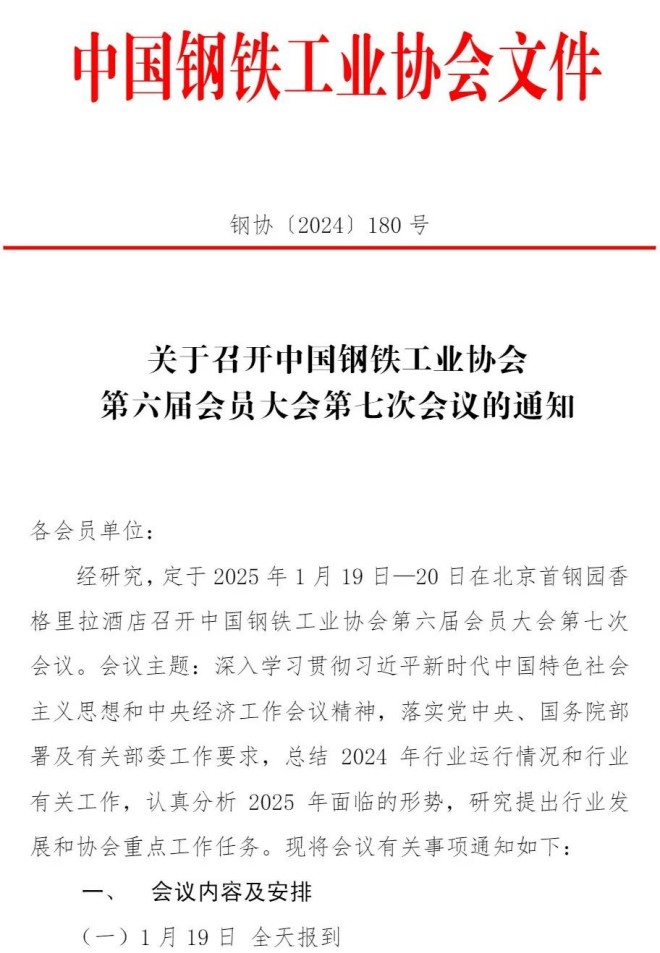 關于召開中國鋼鐵工業協會第六屆會員大會第七次會議的通知