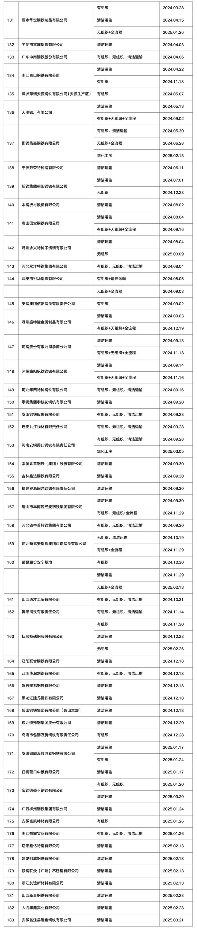 超低排放改造公示鋼企增至183家