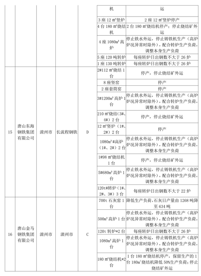 1.鋼鐵、焦化、水泥等重點企業(yè)日進車輛減少50%,京唐港和曹妃甸港(包括民企碼頭)日集輸港車輛減少50%,有供暖任務(wù)的企業(yè)最大限度減少日進出車輛。
