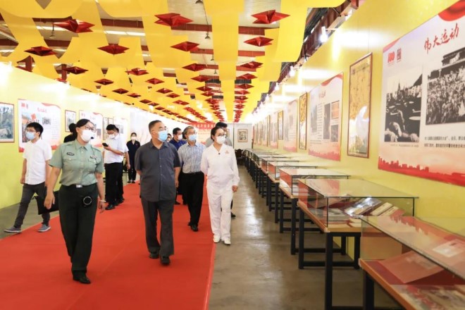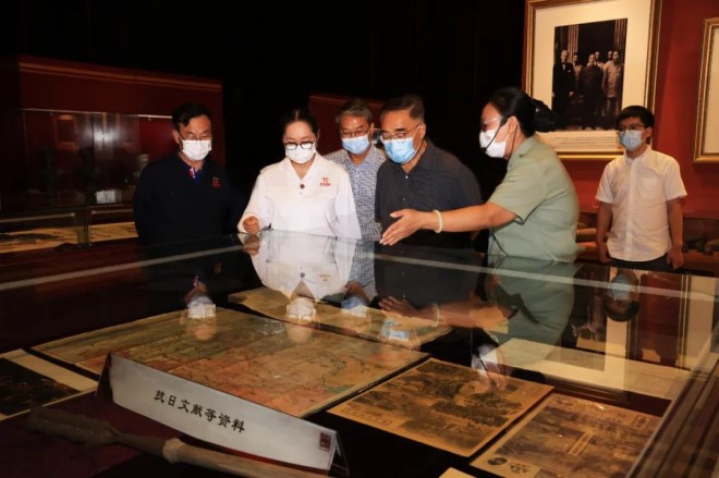 張榮華主席陪同張伯禮院士走進時代記憶館參觀。在這里,他們重溫革命歷史,追憶革命精神,感受紅色文化。張伯禮院士在時空殿堂仔細聆聽講解,在展廳內認真觀看鎮館之寶《長征萬里圖》,了解陸海空三軍儀仗隊指揮刀“天下第一刀”的結構。