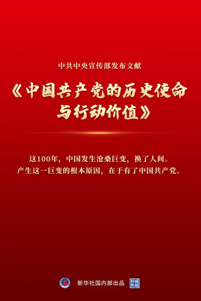 8月26日,中宣部發(fā)布文獻《中國共產(chǎn)黨的歷史使命與行動價值》。