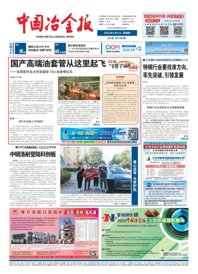 綠色發展,“碳”尋未來。寶鋼股份開發出耐蝕性能優異的超級13Cr系列油套管產品,不僅顯著提升了強腐蝕性油氣田開采的安全性,還大幅延長了油氣田管材的使用壽命,其全生命周期碳排放顯著降低,為油氣高效開發注入新動能,對提升我國碳減排能力、早日實現“雙碳”目標具有重要意義。