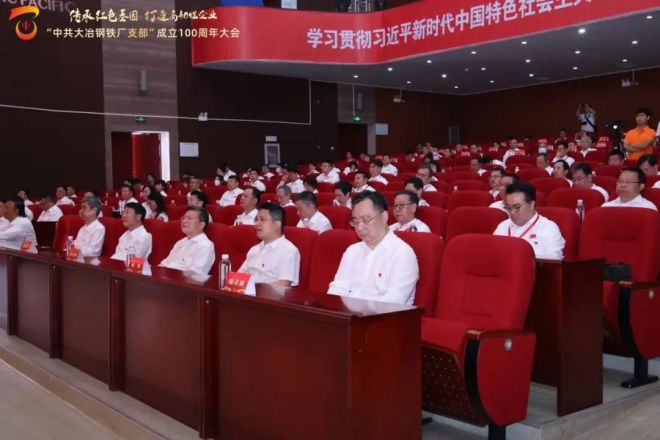 圖為“中共大冶鋼鐵廠支部”成立100周年大會現(xiàn)場