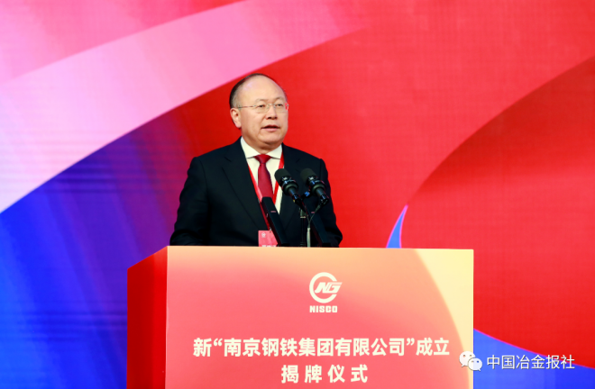 中國鋼鐵工業(yè)協(xié)會黨委書記、執(zhí)行會長何文波發(fā)來賀信。中信集團(tuán)黨委書記奚國華,南京市委副書記、市長陳之常,南京市委常委、江北新區(qū)黨工委書記楊學(xué)鵬,南京市副市長吳煒,中信集團(tuán)黨委委員、副總經(jīng)理、總工程師徐佐,中信股份投資總監(jiān)梁惠江,中信泰富黨委書記、董事長、總裁曾晨,中信泰富特鋼集團(tuán)黨委書記、董事長錢剛,南鋼黨委書記、董事長黃一新共同為新南鋼集團(tuán)揭牌。南鋼總裁祝瑞榮主持活動。各級政府相關(guān)部門領(lǐng)導(dǎo),中信集團(tuán)相關(guān)領(lǐng)導(dǎo),鋼鐵行業(yè)相關(guān)領(lǐng)導(dǎo),股東各方、金融單位、中介機(jī)構(gòu)、投資人及媒體代表、南鋼職工代表等參加活動。