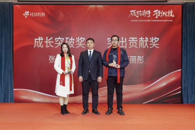 會上舉行2024年度華潤化工優秀員工獎、成長突破獎和突破貢獻獎以及服務部團隊獎的頒獎儀式。朱召作為獲獎代表在會上發言。