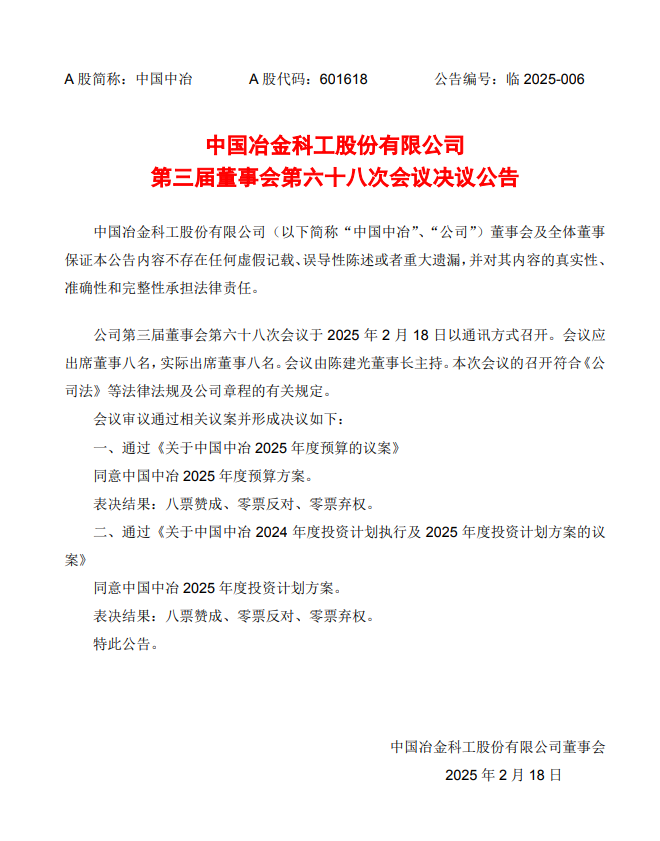 中國(guó)中冶:中國(guó)中冶第三屆董事會(huì)第六十八次會(huì)議決議公告