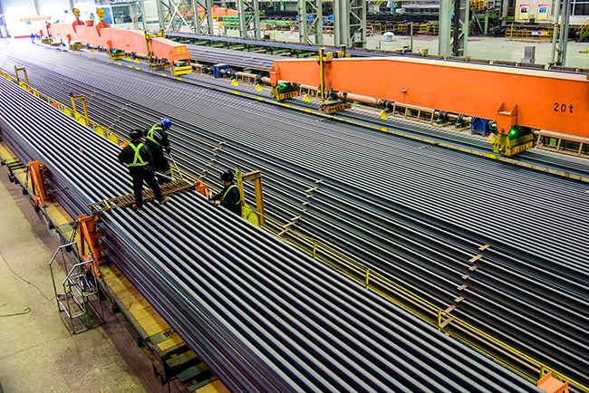 今年初以來,包鋼軌梁廠堅持以市場為導向,鉚足干勁,抓細抓實產品結構調整和質量提升工作,高效交付優質產品,確保國家重點工程鋼軌供應合同兌現。截至2月18日,包鋼軌梁廠已軋制發出合格高速鋼軌8500余噸。圖為包鋼軌梁廠職工正在檢查即將裝車外發的高速鋼軌。(王慧敏/文白立新/攝)