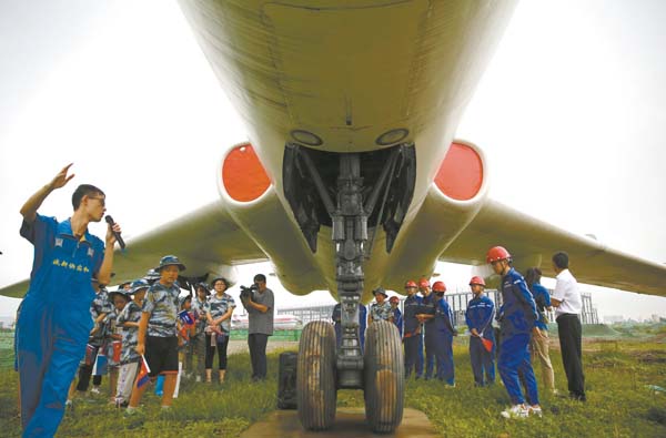 教官帶領大家參觀某退役實體戰機