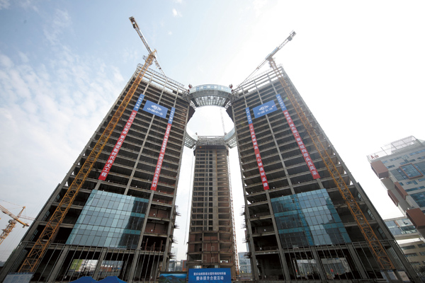 重慶仙桃數據谷是圍繞建成中國大數據產業生態谷的總體目標而打造的產業園,整體規劃面積達2平方公里,總建設面積約175萬平方米,具有獨特的建筑風格和特色。尤其是由中國五冶集團承建的該項目二期一標段,繼6座“小蠻腰”造型大樓“吸睛”無數后,鋼結構高空環廊提升將再次聚焦各界目光。該環廊提升就位后,宛如一顆明珠俯瞰數據谷全景,將為這片大數據產業發展的熱土再添發展動力。