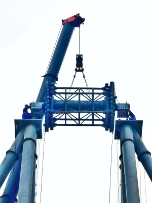 中冶設(shè)備總院菏澤“文亭之眼”摩天輪中心主軸成功起吊