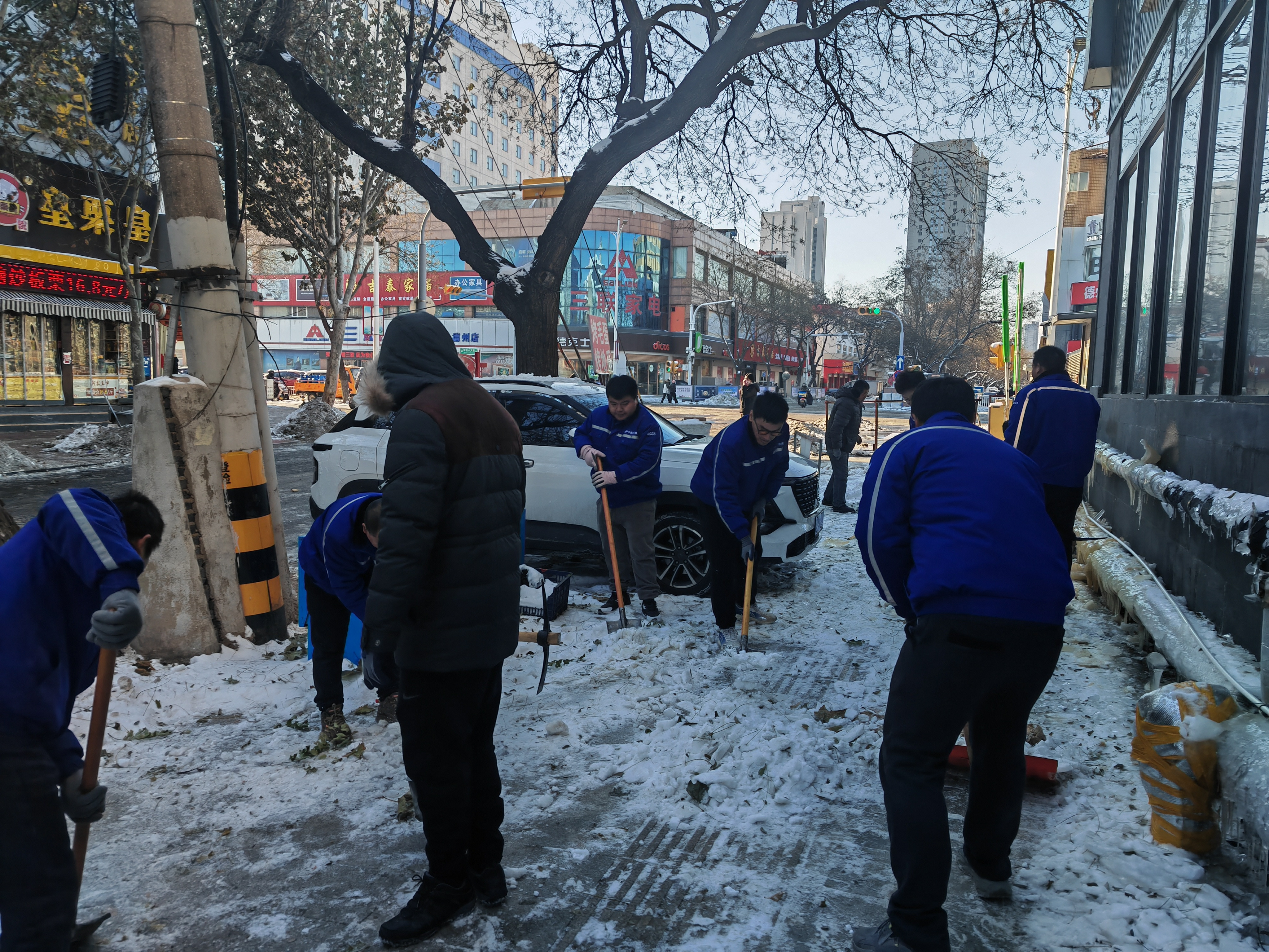 位于山東德州的中國五冶羅莊棚改項目部全體管理人員迅速組建成支援隊伍,帶著鏟車共同加入到了德州“清雪攻堅戰”中。由于結冰位置主要位于人行道和綠化帶樹木底部,只能以人力清除積冰后機械運冰。項目管理人員合力奮戰,手拿鐵鍬、推板、鎬頭等工具一點點清除積雪積冰。大家不畏嚴寒、干勁十足,一襲中冶藍工裝的五冶人用實際行動市民出行提供便利,受到過路市民的點贊。