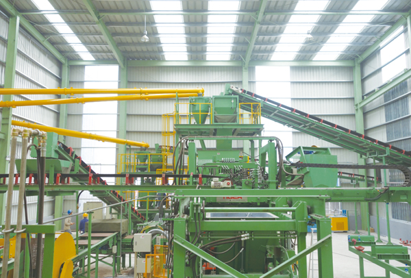 圖為中冶寶鋼鋼渣透水磚生產線。