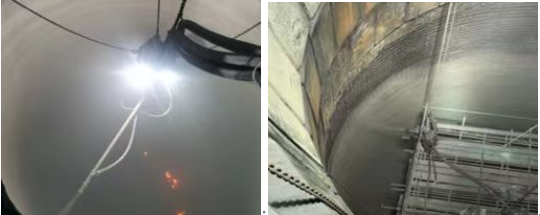 內襯濕法噴注技術的目的是為了解決爐腹、爐腰、爐身等部位耐材脫落引起的氣流不順、能耗升高等問題,其特點是快速高效,可以在較短時間內復產,降低對鐵廠的影響。濕法噴注技術可分熱態和常溫兩種,熱態濕法噴注技術是將料面降到風口區域后,爐內覆蓋壓火料,采用機械手進行噴注造襯,使高爐恢復至操作爐型。這種噴注方式快速安全,人員不用進爐,沒有有限空間作業,對于2000m3左右的高爐,在24小時內即可修復完成。常溫濕法噴注技術是在停爐降料面后,爐內溫度和煤氣含量降到一定標準后,人員進爐內排險清理,也可對爐內植筋掛網,延長耐材使用壽命。