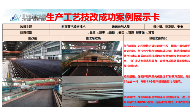 每周四于燒結廠4樓會議室召開CO減排攻關會對實施情況及完成情況進行通報,對存在的問題進行總結,明確問題所在,制定對應措施,并形成督辦事項,持續改進提升。