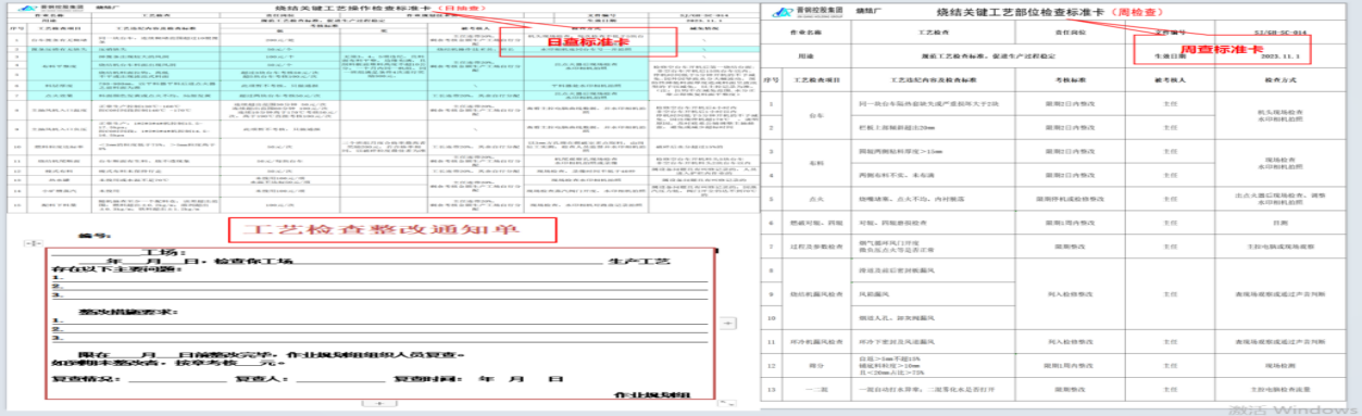 強化燒結操作穩定性:制定日參數控制及操作方針標準卡,主任進行把控,嚴格按操作方針執行操作,改善過程穩定性。