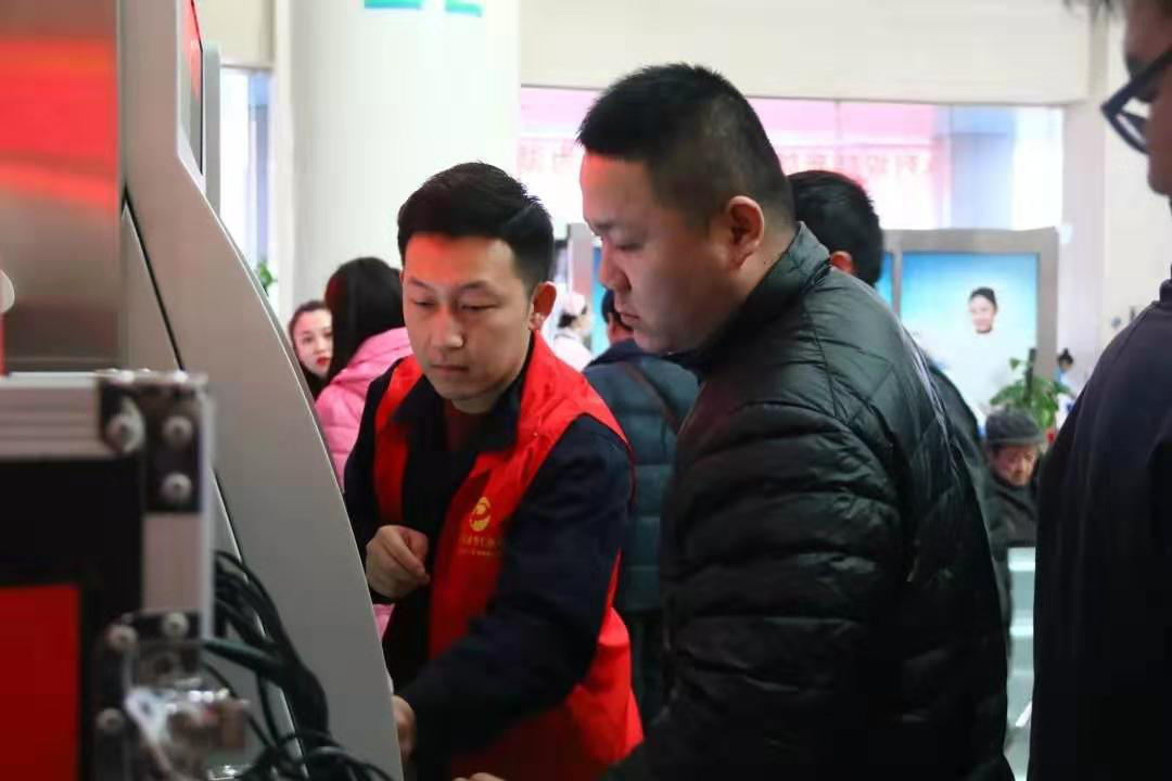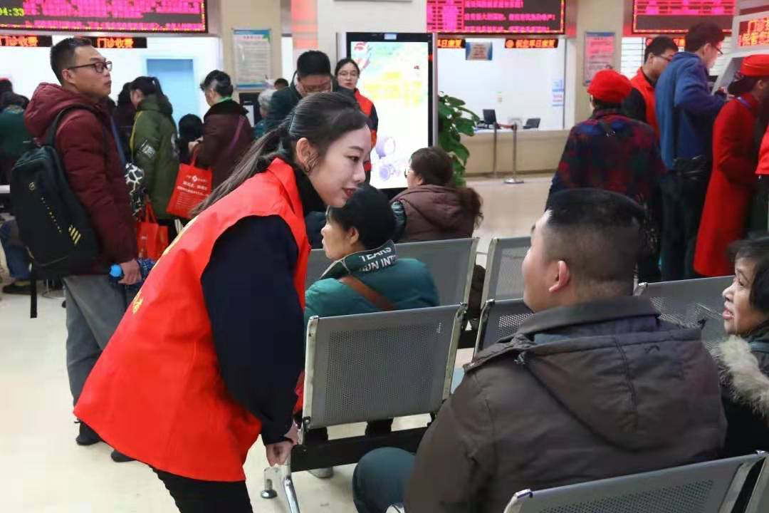 來自中國一冶的志愿們身著在門診大廳里進行導診、分流、咨詢等志愿活動,幫助患者自助掛號,為行動不方便的患者提供服務,讓市民倍感溫馨。